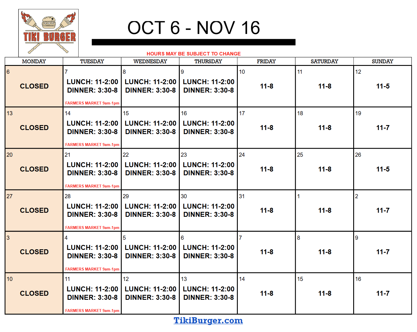 CLOSED MONDAY